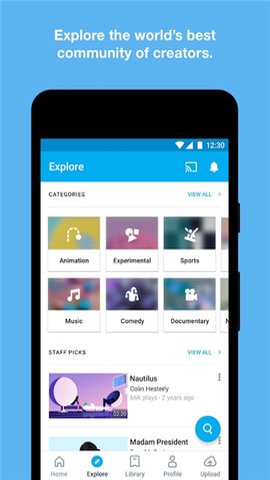 4、Vimeoapp为用户提供了多样化的内容推荐,帮助他们发现更多感兴趣的作品,拓宽视野。