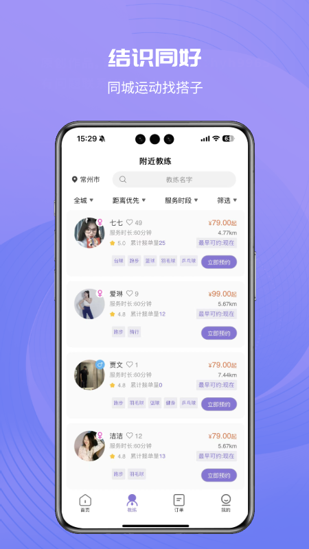 2. **教练匹配系统**:软件会根据用户的需求和偏好,智能推荐合适的运动教练,确保用户获得最佳的服务体验。