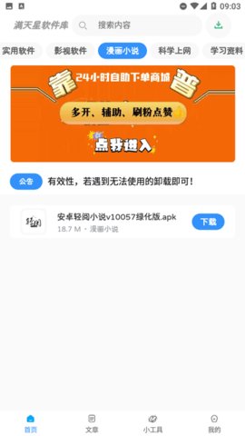 1、首先,打开满天星软件库App,您将看到一个简洁明了的首页。