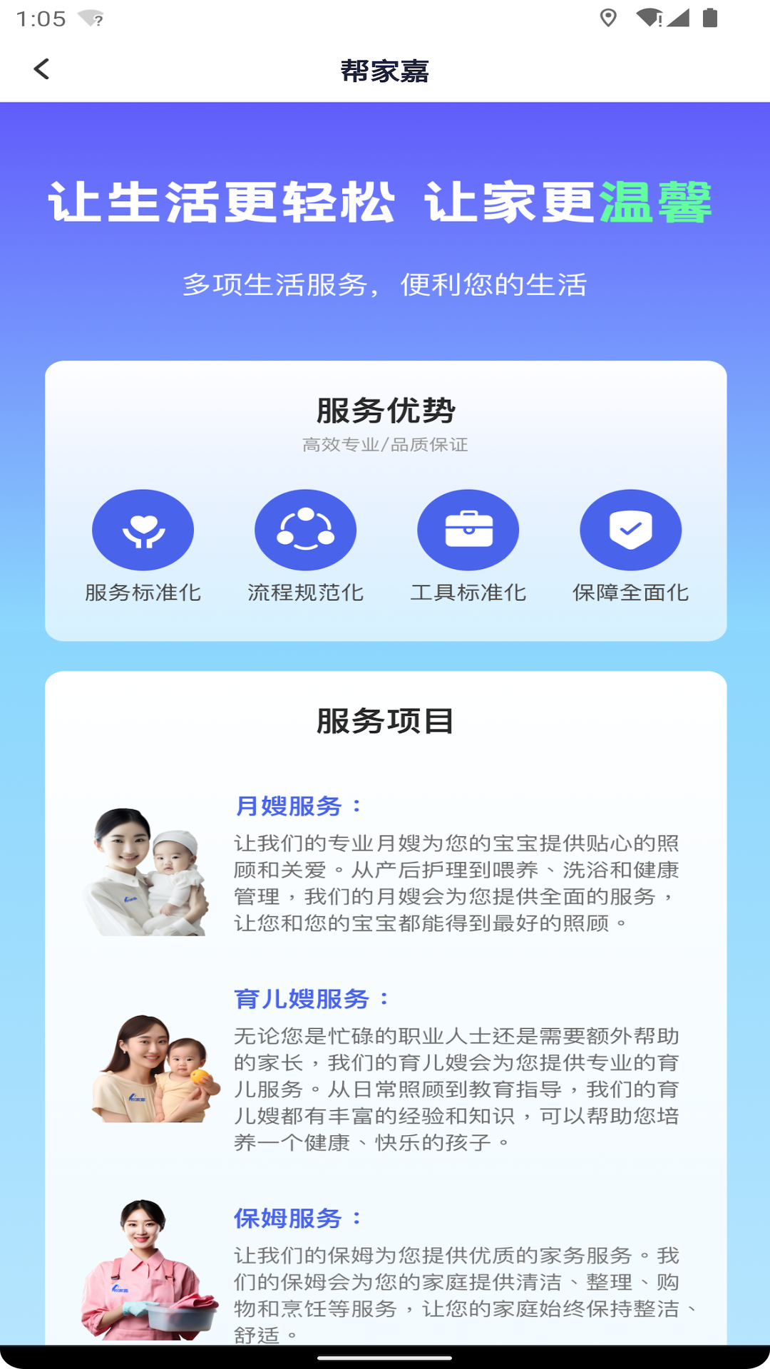 1. 帮家嘉为用户提供了一个集中化的服务平台,用户无需在多个渠道间切换,可以在一个应用中完成所有家庭服务的需求。