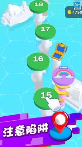 2、玩家通过轻触屏幕让球球弹跳,灵活避开障碍物,同时收集金币和道具,以此来追求更高的分数。