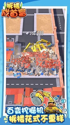 拆楼成首富手游是一款充满创意的休闲闯关游戏。在这里,玩家将化身为一名挖掘机经营者,开启一段充满挑战与乐趣的拆楼之旅。游戏的核心在于拆除城市中的违建,通过收集石块并将其加工成砖块,玩家不仅能体验到拆除建筑的快感,还能通过建造摩天大楼来实现自己的商业梦想,逐步积累财富,打造属于自己的商业帝国。