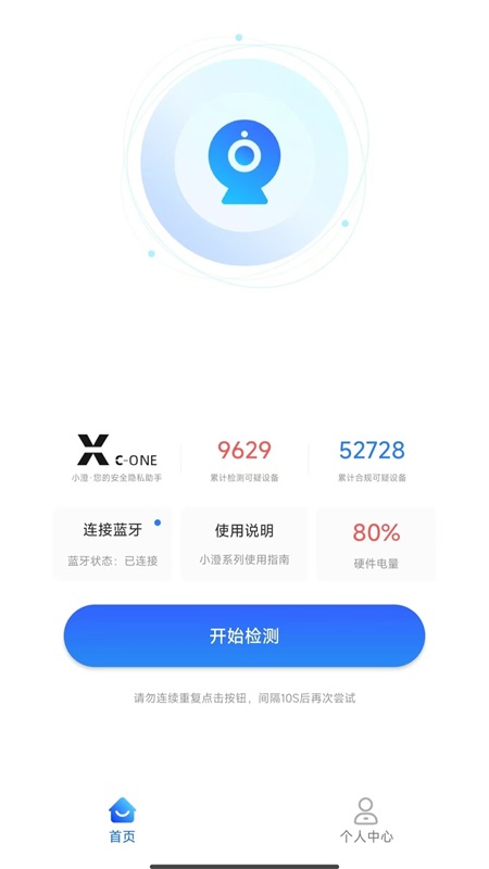 2. 在主界面上,找到开始检测按钮,点击进入隐私检测模式。