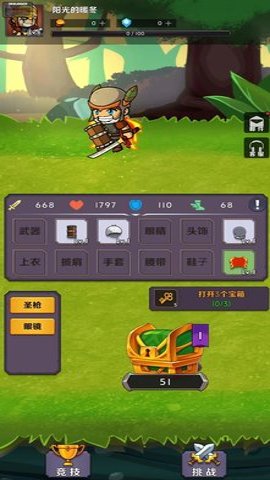 1、玩家通过简单的点击操作,使用锤子来打开箱子,收集里面的道具和装备,这是游戏的核心玩法之一。