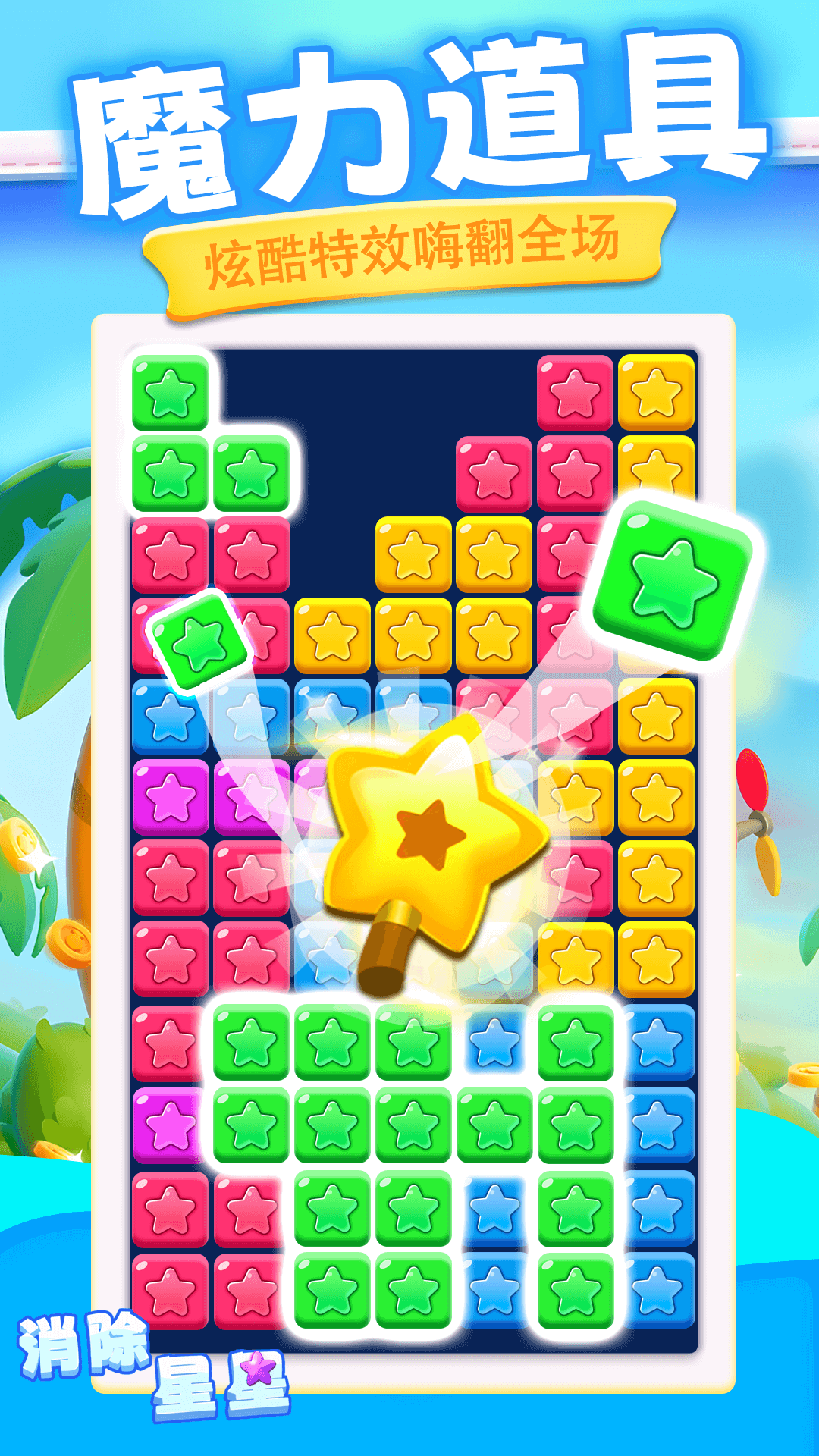 游戏中有多种不同的星星类型,每种星星都有其独特的特效,玩家在消除时可以体验到不同的视觉效果,增强了游戏的趣味性。