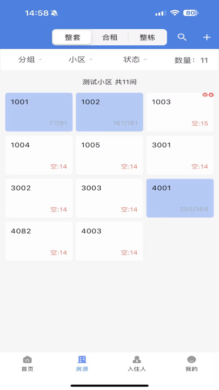 2. 点击房间管理模块,进入后可以查看所有房间的状态。