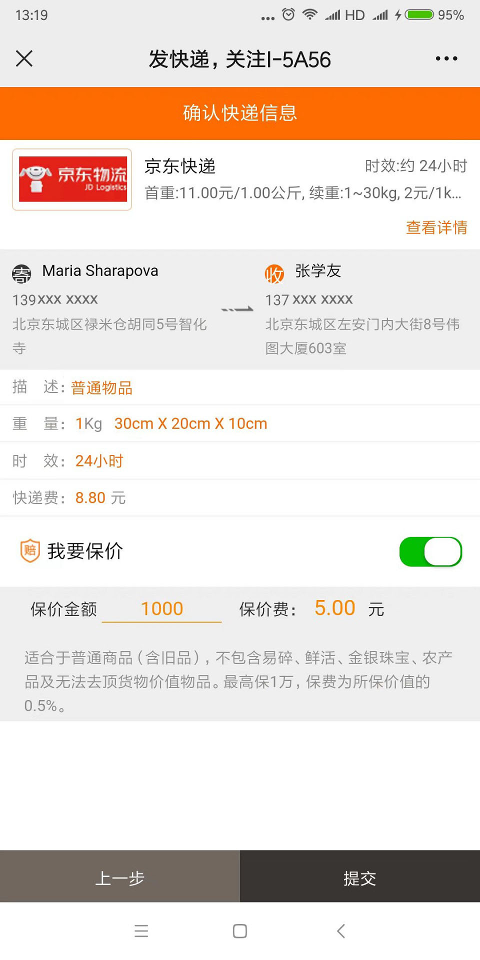 4. 确定快递公司后,点击下单按钮,填写相关信息并确认。