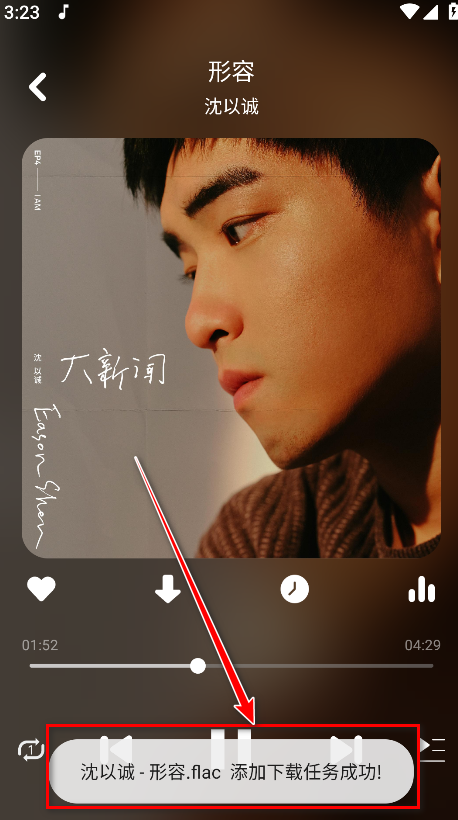 同时,支持点击“爱心”图标收藏喜爱的歌曲,或点击下载按钮将歌曲保存至本地,方便离线收听。