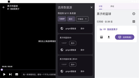 2、在播放界面,选择不同的数据源,以确保观看时的流畅性和画质,满足不同的观看需求。
