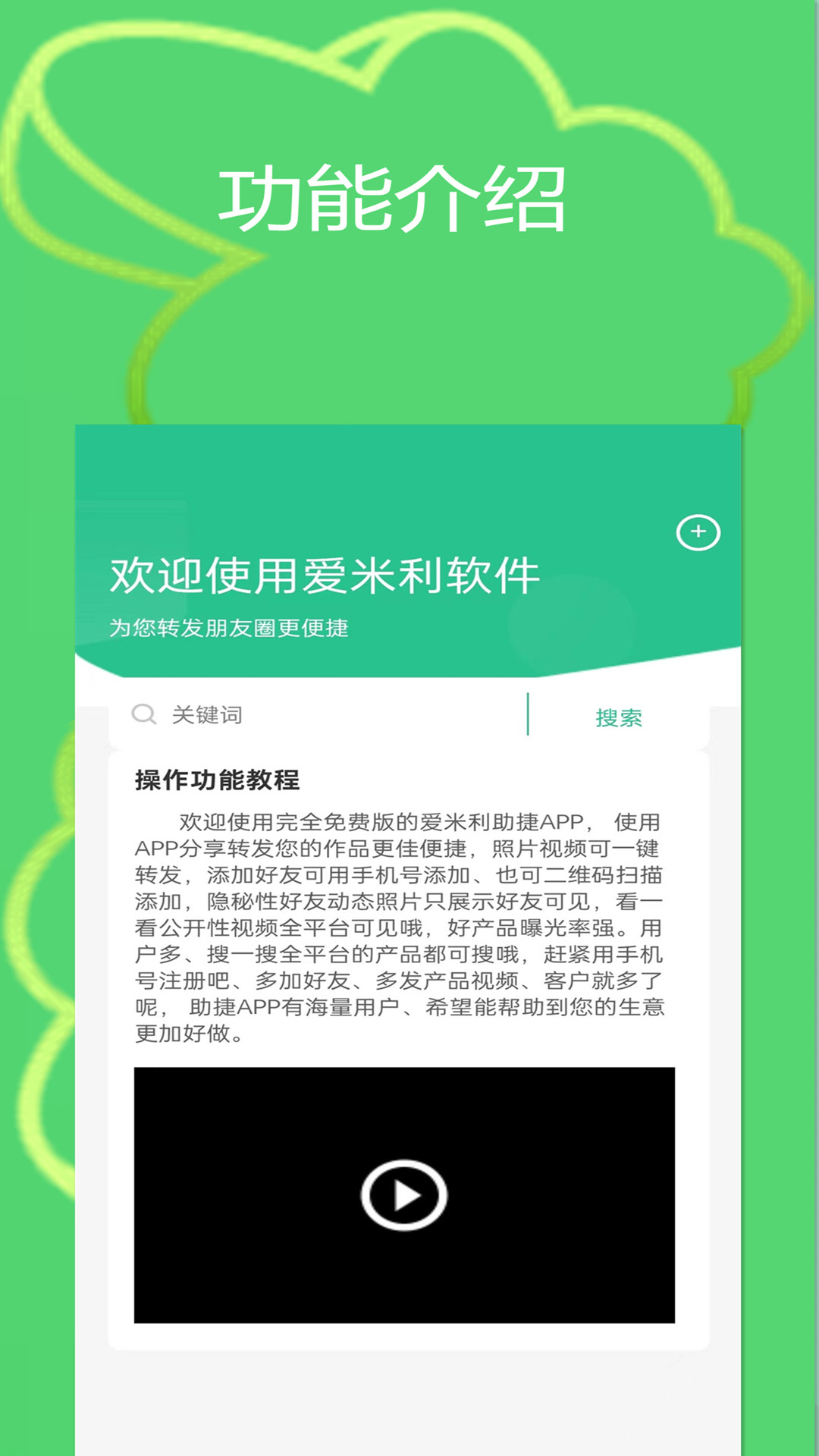 爱米利是一款专为产品转发和宣传设计的小程序,帮助用户轻松分享产品照片和视频,提升产品的曝光率。它特别适合那些希望通过社交网络进行产品推广的客户,能够有效地解决用户在宣传过程中遇到的繁琐步骤。借助爱米利,用户不仅可以方便地添加下线好友,还能通过一键转发功能迅速将产品信息传播给更多人,助力销售增长。