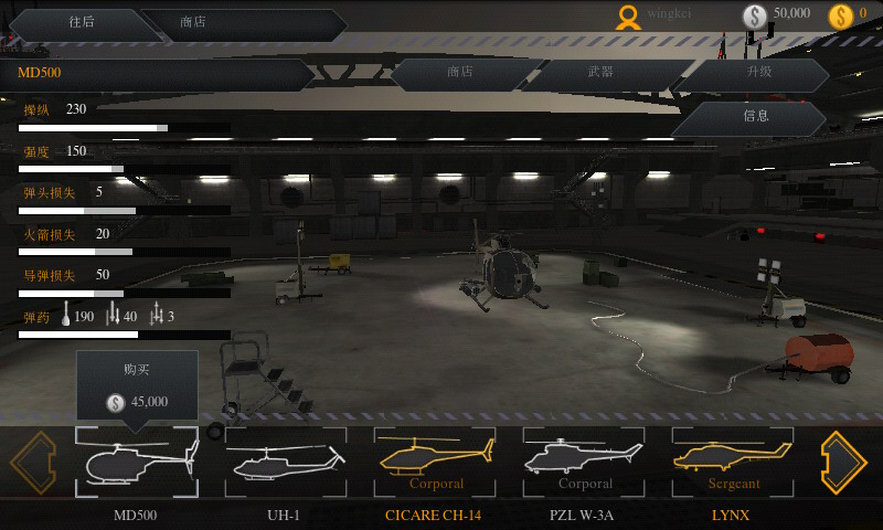 1、游戏提供了多种直升机选择,每种直升机都有独特的技能和战斗特点,玩家可以根据自己的玩法风格进行选择和搭配。