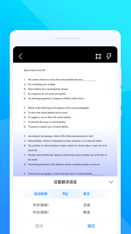 3、点击拍摄图标启用拍照翻译功能,将取景框对准需要翻译的文本并保持稳定对焦。