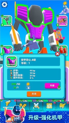 4、通过不断的战斗,玩家能够获得经验值,升级自己的机器人,提升战斗能力,并解锁更强大的武器和装备。
