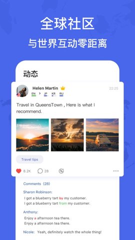 2、HelloTalk还有一个动态圈功能,你可以在这里分享自己的动态和提问,与母语者进行交流。