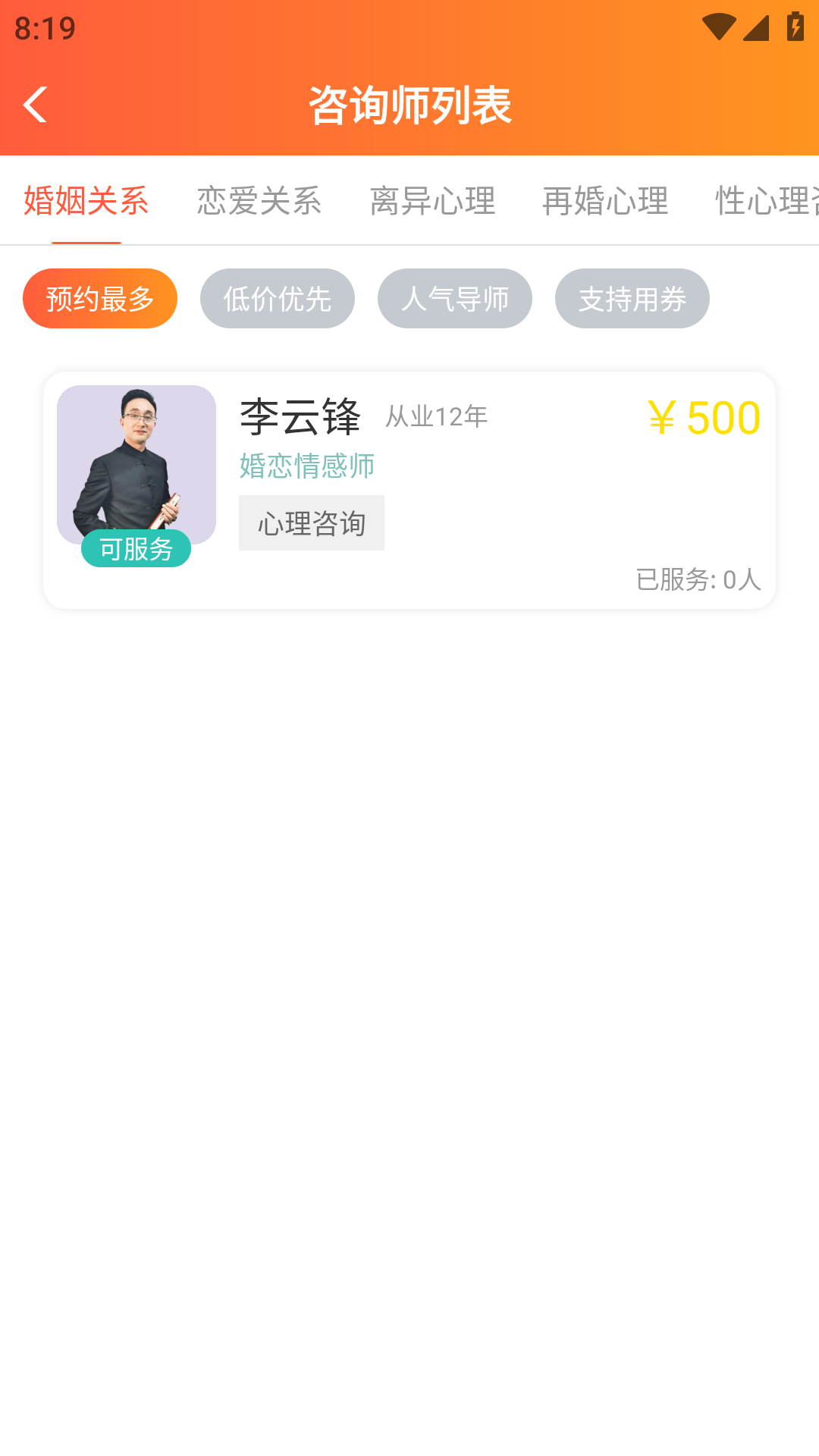 3. 浏览咨询师列表,查看每位咨询师的简介和评价,选择适合自己的咨询师。