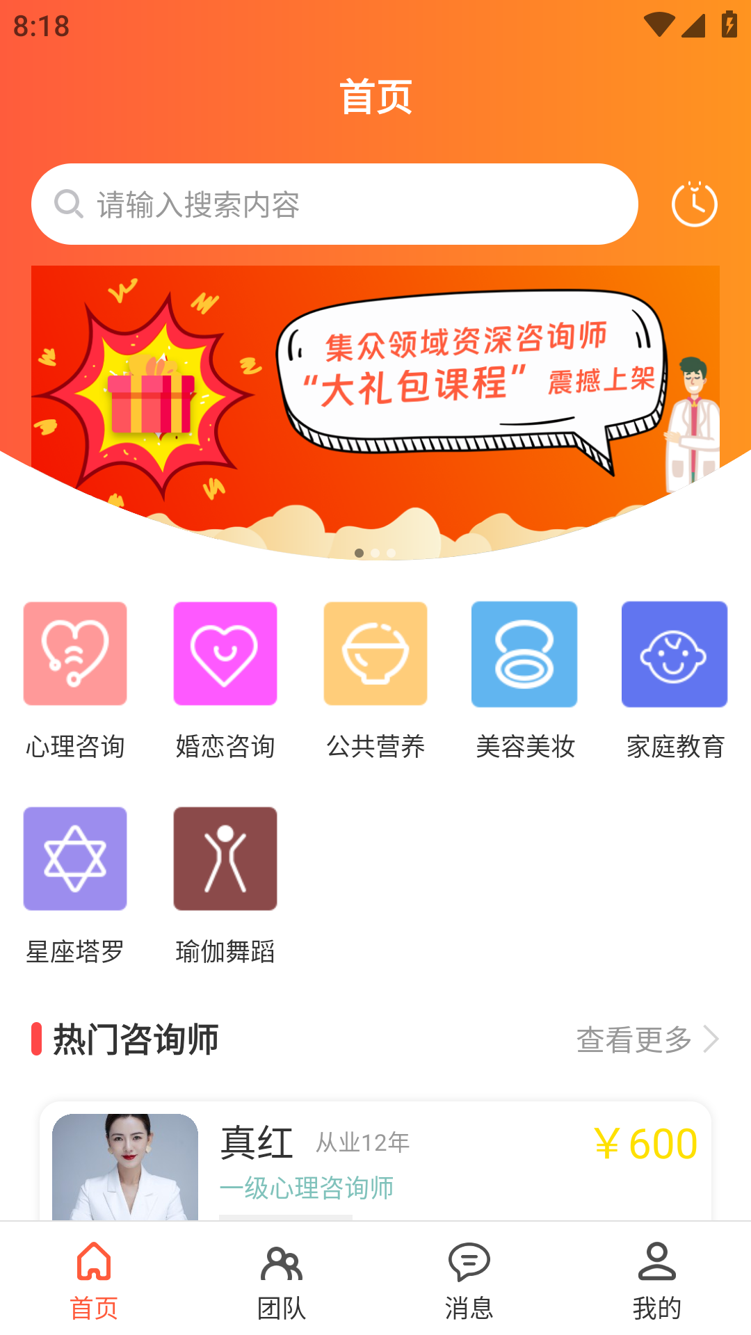 2. 根据自己的需求选择相应的咨询类别,心理咨询或婚姻情感咨询,点击进入。