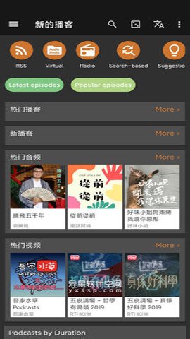 3、根据不同类别浏览新的和热门播客,帮助他们发现更多值得关注的节目。