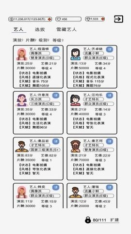4、通过商业演出获得的资金可以用来提升演员的能力和制作水平,形成良性循环,推动游戏进程。
