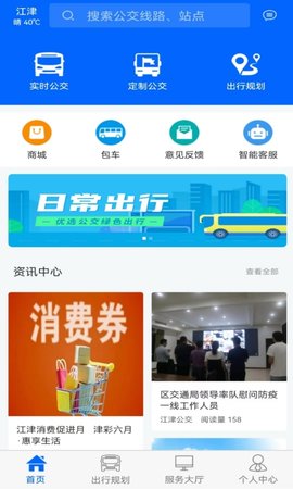 江津公交是一款由重庆市官方推出的公共交通出行服务应用,主要面向江津区市民提供公交信息查询和出行规划服务。能够实时显示公交车辆的位置、到站距离和预计到达时间,让乘客合理安排出行计划。除了基础的公交查询功能,还包含线路换乘建议、定制化公交服务以及包车预约等实用模块。应用内整合了购物商城、失物招领等生活服务,为日常出行增添便利。