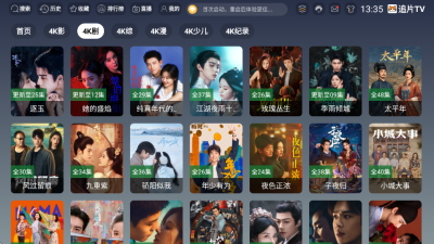 装好主界面就是一行一行的海报墙。刚进去可能有点懵,不知道看啥,可以先用遥控器移到最上面的搜索栏,点进去输个你知道的剧名试试水,比如繁花什么的,能搜出来就说明资源库是通的。