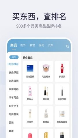 2、该应用是很特别的,主要作用是为大家提供各种数据的排行榜,日用品哪些比较热门,哪些店子的东西比较好吃等。