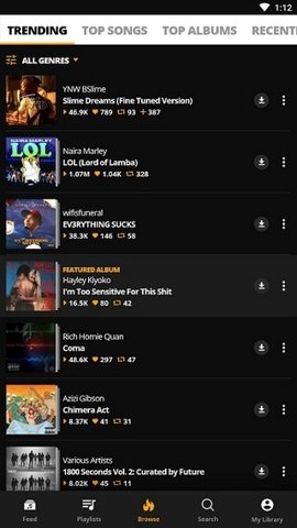 Audiomack手机版是一款音乐爱好者必不可少的音乐软件,免费收听海量的音乐内容。支持搜索众多主流歌手的作品,还能输入关键词轻松找到特定的音频。这里带来了Hip Hop、电子音乐和是雷鬼,覆盖更多人的音乐喜好。Audiomack的界面简单明了,但其丰富的资源一定会让你感到惊喜,喜欢的音乐一应俱全。