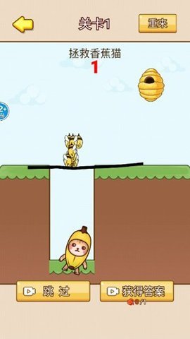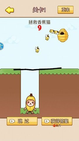 1、玩家需要通过画线的方式来阻挡蜜蜂的攻击,确保香蕉猫的安全。每个关卡都有不同的布局,玩家必须仔细观察,选择最佳的画线位置。