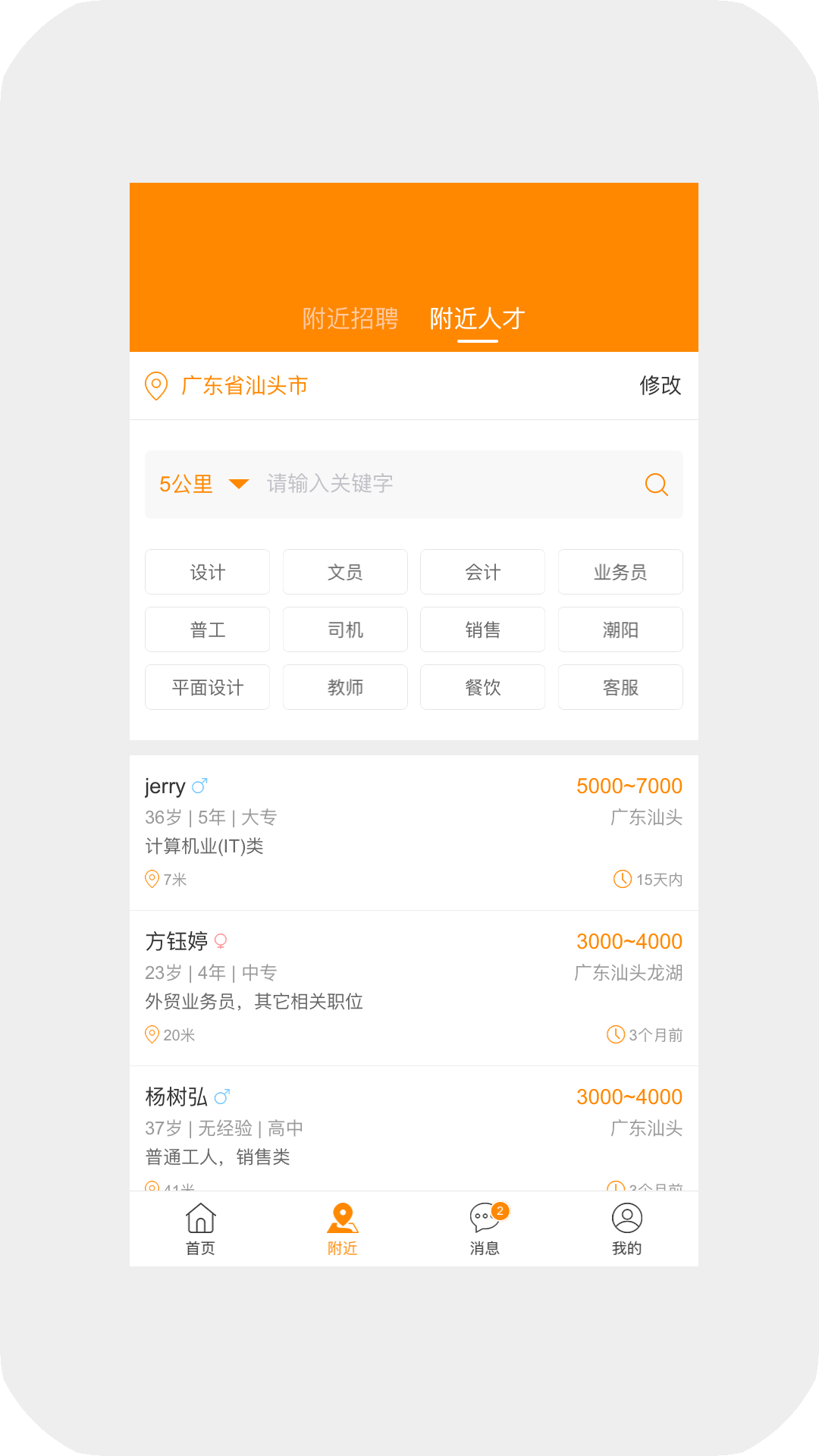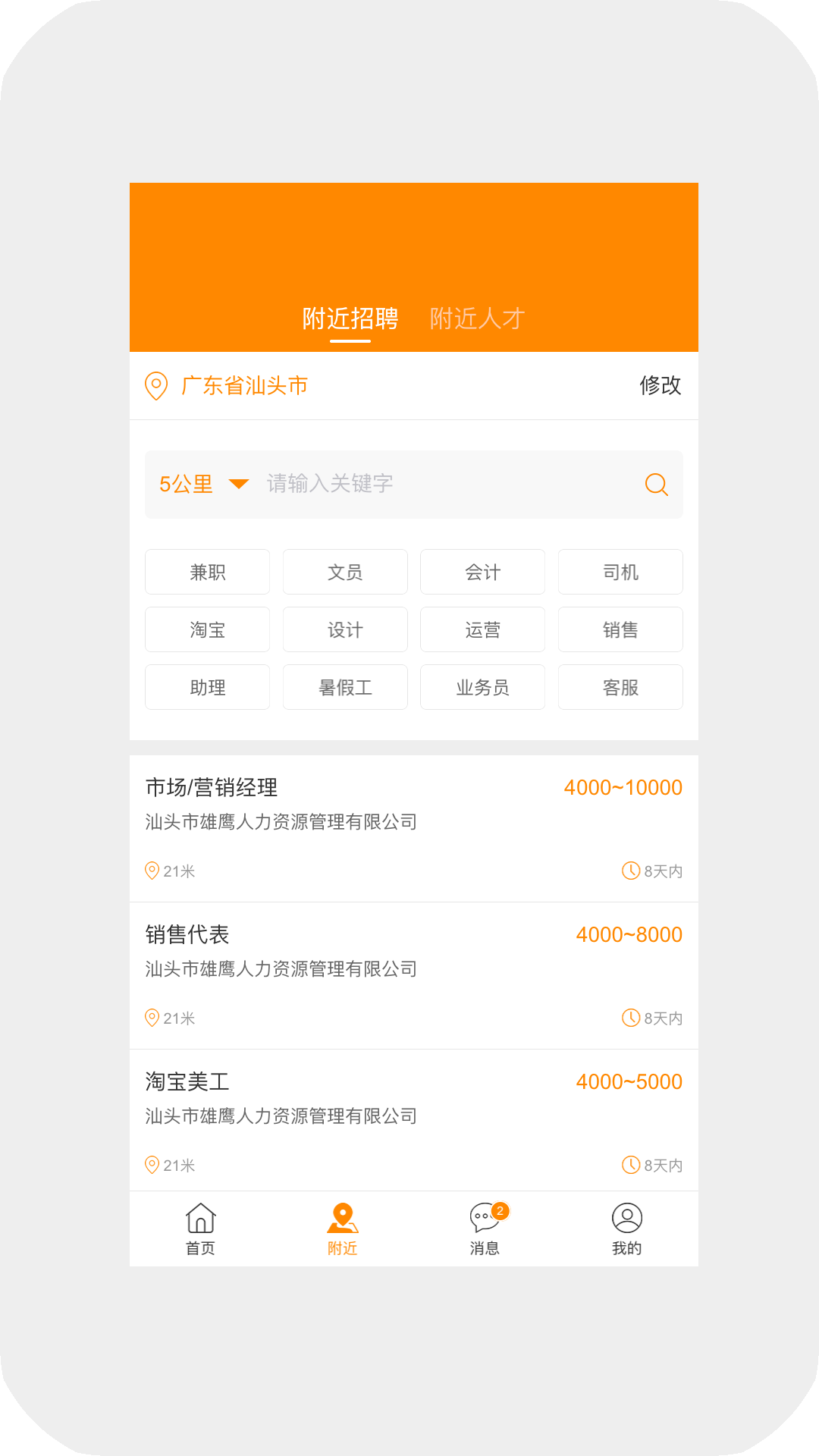 3. 浏览附近的职位信息,使用搜索功能查找感兴趣的工作。
