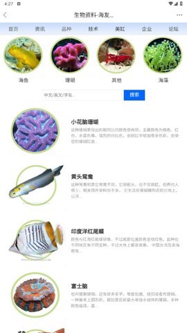 1、我们提供了珊瑚、无脊椎动物、海藻、海鱼等丰富的海洋生物图鉴介绍,以及海洋新闻资讯,为大家提供阅读科普的机会。