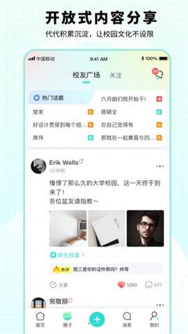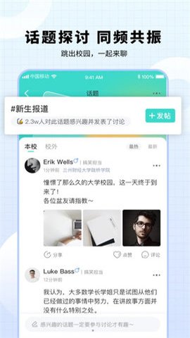 1、随时随地与其他同学进行交流,分享学习心得和生活经验,从而建立良好的社交网络。