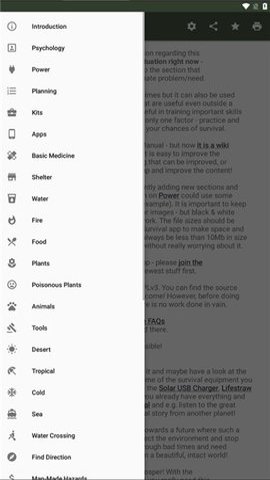 1、打开SurvivalManual应用后,用户会看到主界面,展示各种生存技能和知识模块。