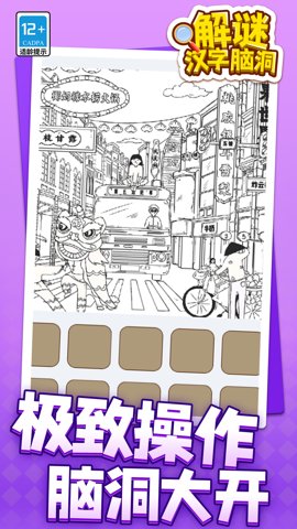 在《解谜汉字脑洞》中,玩家将踏上一段充满趣味和挑战的解谜旅程。游戏中设有数十个关卡,设计精巧的谜题等着你去破解。每一个关卡都需要你运用智慧,发挥脑洞,挑战自己的思维极限。游戏不仅仅是消磨时间的工具,更是一个放松心情、锻炼大脑的好选择。通过轻松的解压体验,玩家能够在欢声笑语中,发现自己的潜能,感受解谜的乐趣,挑战各种搞笑的梗,让你在游戏中乐在其中。