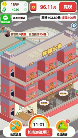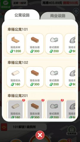 在《幸福公寓红包版》中,玩家的主要任务是经营自己的公寓。首先,你需要通过收租来获取金币,这些金币可以用来升级公寓的设施。每当你完成一定的升级,都会解锁新的功能和租客类型,吸引更多的客人入住。随着公寓等级的提升,你的租金收入也会逐渐增加,从而让你有更多的资金进行后续的投资。