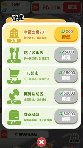 在《幸福公寓红包版》这款游戏中,玩家将体验到模拟经营的乐趣,仿佛自己真的成为了一位房东。你需要通过不断升级和改善自己的公寓设施,来吸引更多的客人入住。每当客人入住,你就能收取租金,赚取金币。这些金币不仅可以用来升级公寓,还能兑换成红包,提取到真实账户中。游戏的设计让你在享受经营乐趣的同时,还能体验到赚钱的快感。不过,游戏的提现规则和实际收益却让人感到有些困惑,特别是在提现比例上,很多玩家发现实际能提取的金额远低于预期。