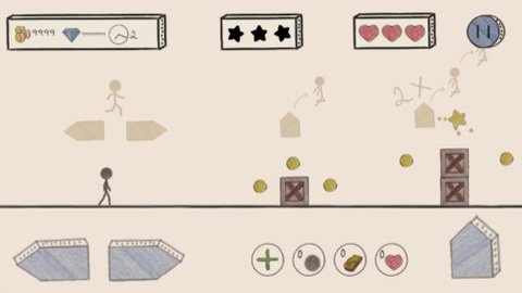 1、玩家需要操控角色在关卡中进行跳跃与移动,以躲避各类障碍物,保持角色的生命值。