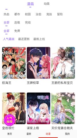 1、下载并安装酷彩动漫应用,打开后你会看到一个简洁明了的首页,展示了推荐的漫画作品。