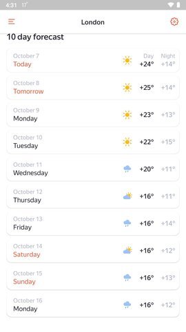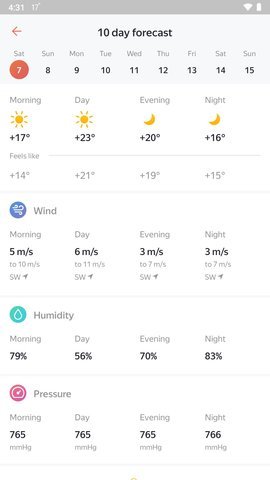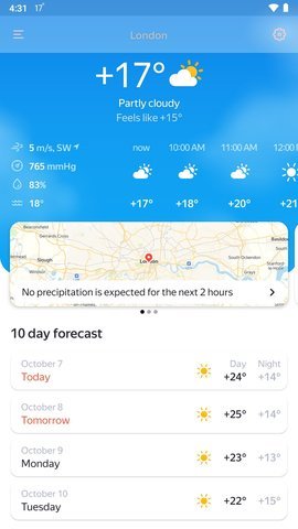1、Yandex天气通过提供详细的天气数据,如体感温度和湿度,让用户对天气状况有更全面的了解。