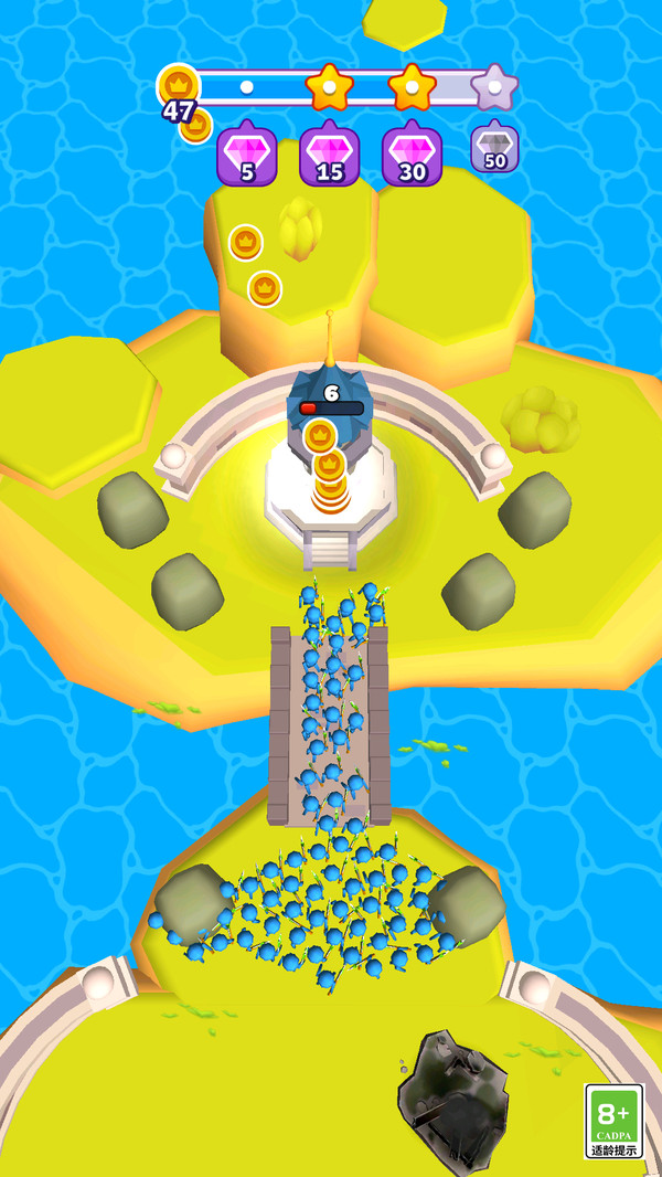 3. 军队养成系统使玩家能够通过收集宝石和金币,解锁多款小兵皮肤与能力增强道具,增加了游戏的深度与趣味性。