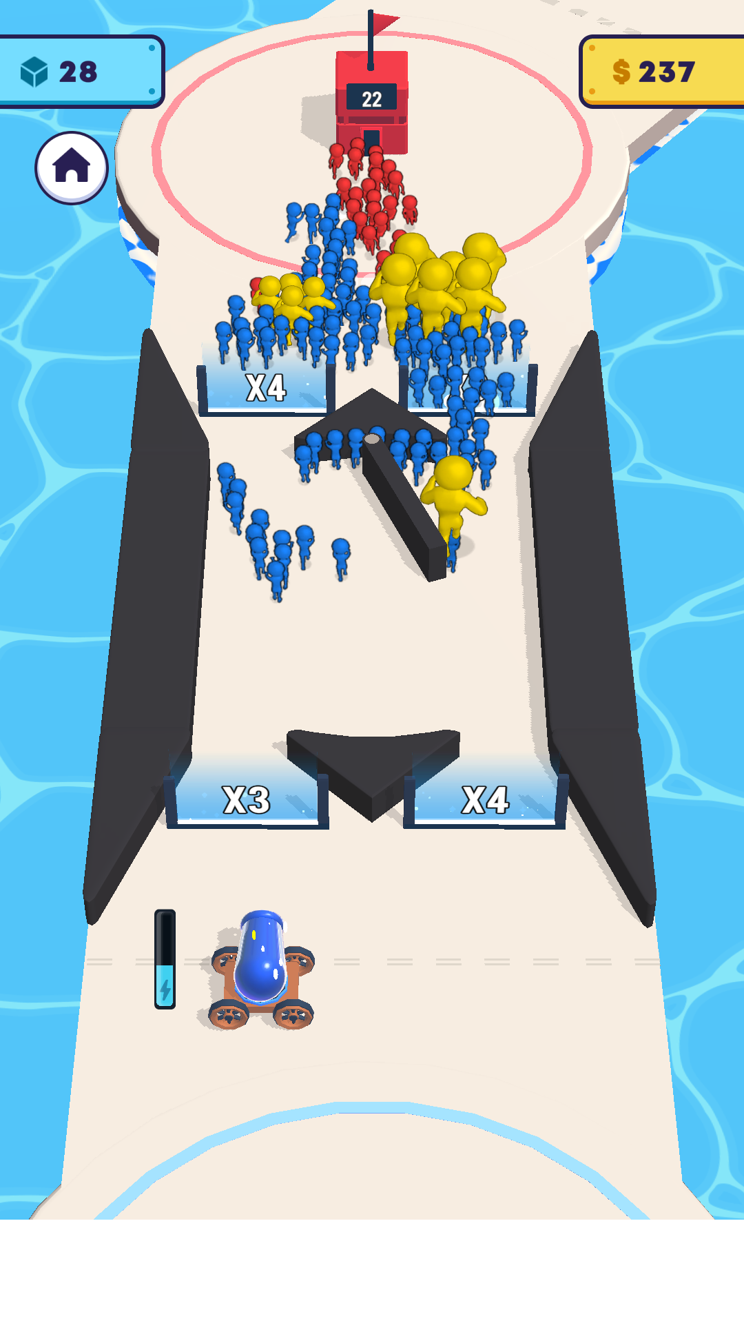 在魔力超人中,玩家的主要目标是通过火炮的攻击来阻挡敌人的进攻。玩家需要选择合适的火炮并将其放置在战略位置,确保能够有效覆盖敌人的进攻路线。随着游戏的进行,玩家会发现不同的关卡会有不同的倍增门槛,掌握这些门槛的使用时机是游戏的关键。玩家可以通过不断发射火炮来克隆火柴人,增加队伍的数量。每当火柴人数量增加,玩家的战斗力就会随之提升,从而更好地应对敌人。