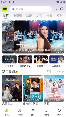1、打开应用后,在首页浏览推荐内容,或通过顶部的搜索框直接输入想看的节目名称。