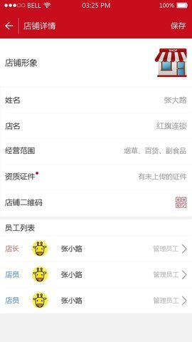 3、在主界面上,点击“店铺管理”模块,进入后可以进行店员信息的添加或删除。