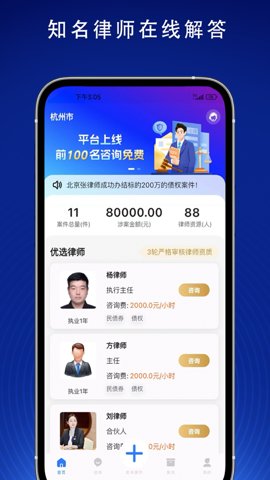 1、提供百家律师事务所的在线咨询服务,随时获取专业律师的意见,解决法律问题不再是难事。