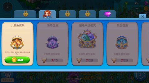 4、丰富的海底生物解锁系统,让玩家在游戏中逐步建立自己的美人鱼王国,感受成就感和乐趣。