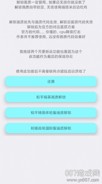 3、对游戏本身的客户端没有任何修改或破坏,仅仅是通过调整系统级的图形调用指令来达成效果,极大降低了封号风险。