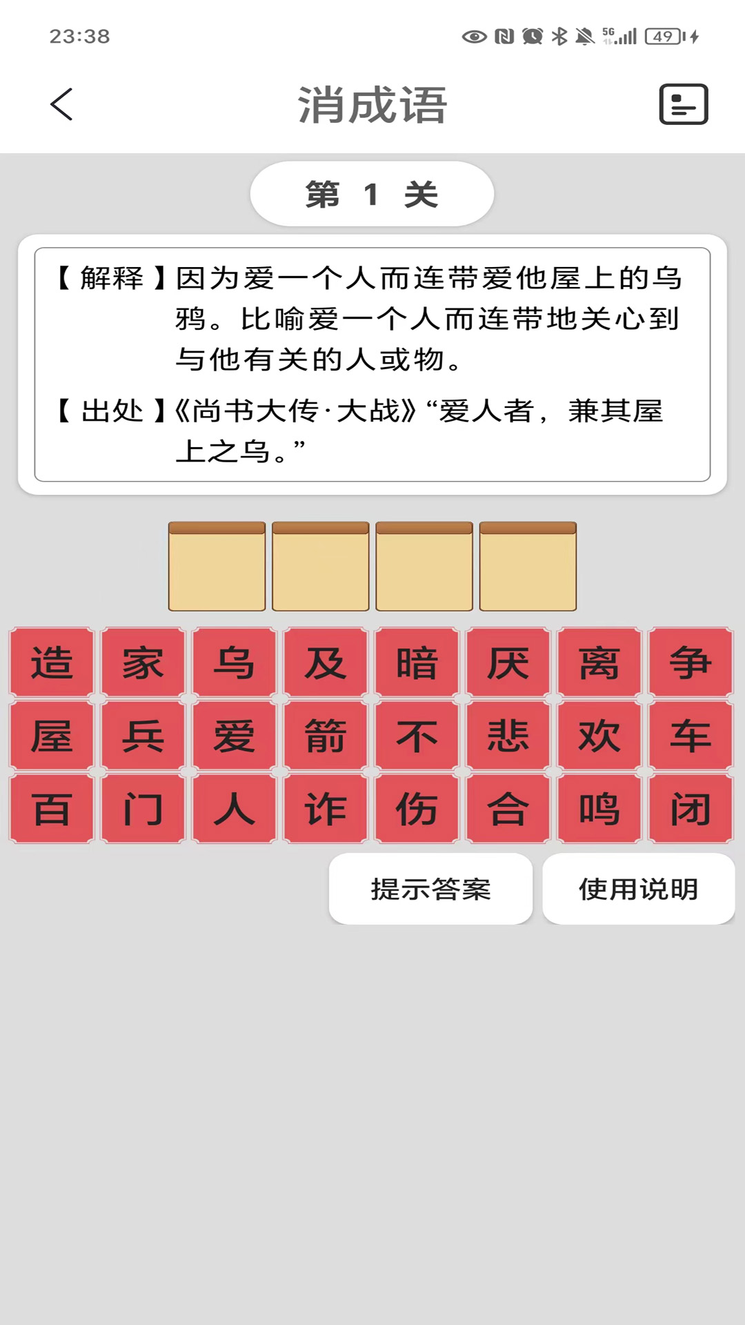 1、看图猜成语功能,用户通过观察图片来猜测成语,提升成语的联想能力。