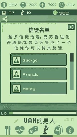 2、尽管游戏的设定颇具挑战性,但操作上却十分简单,玩家只需关注克苏鲁的饮食和环境卫生,即可顺利进行。
