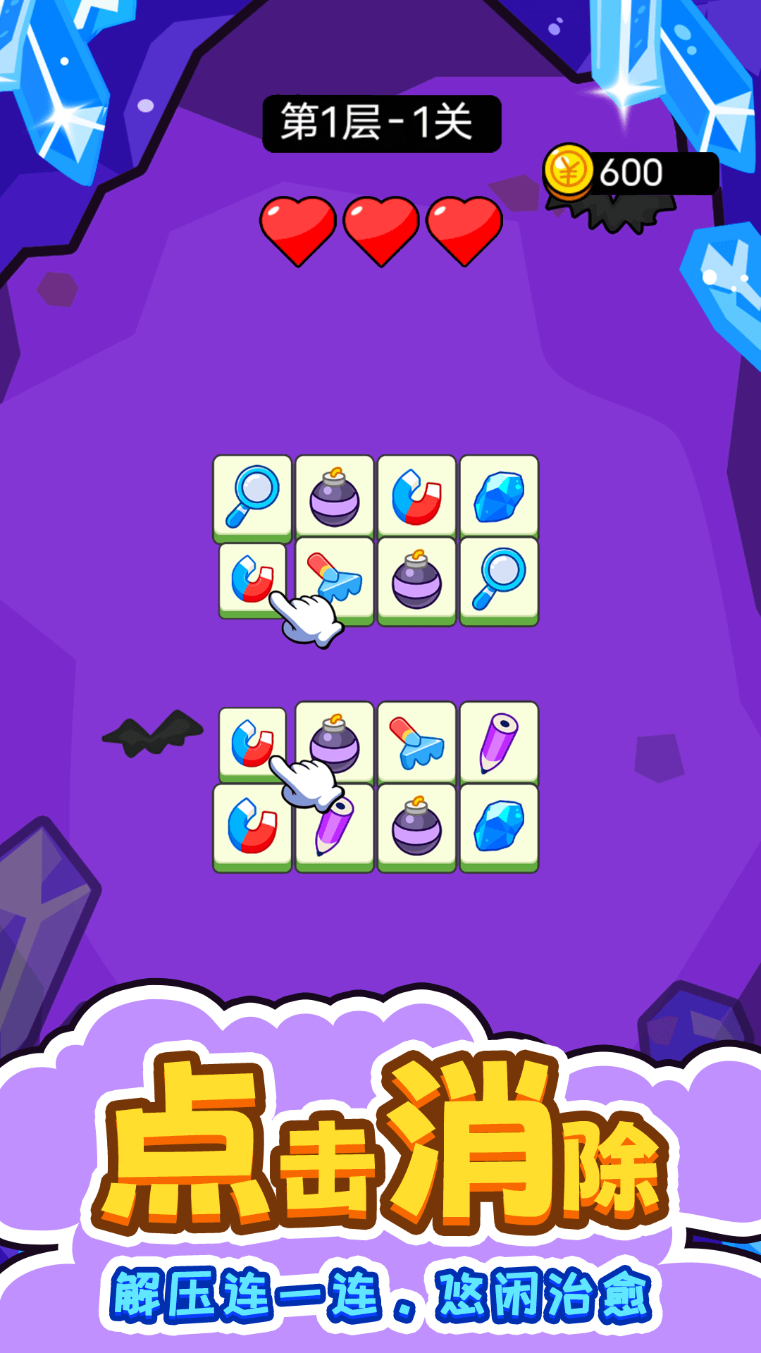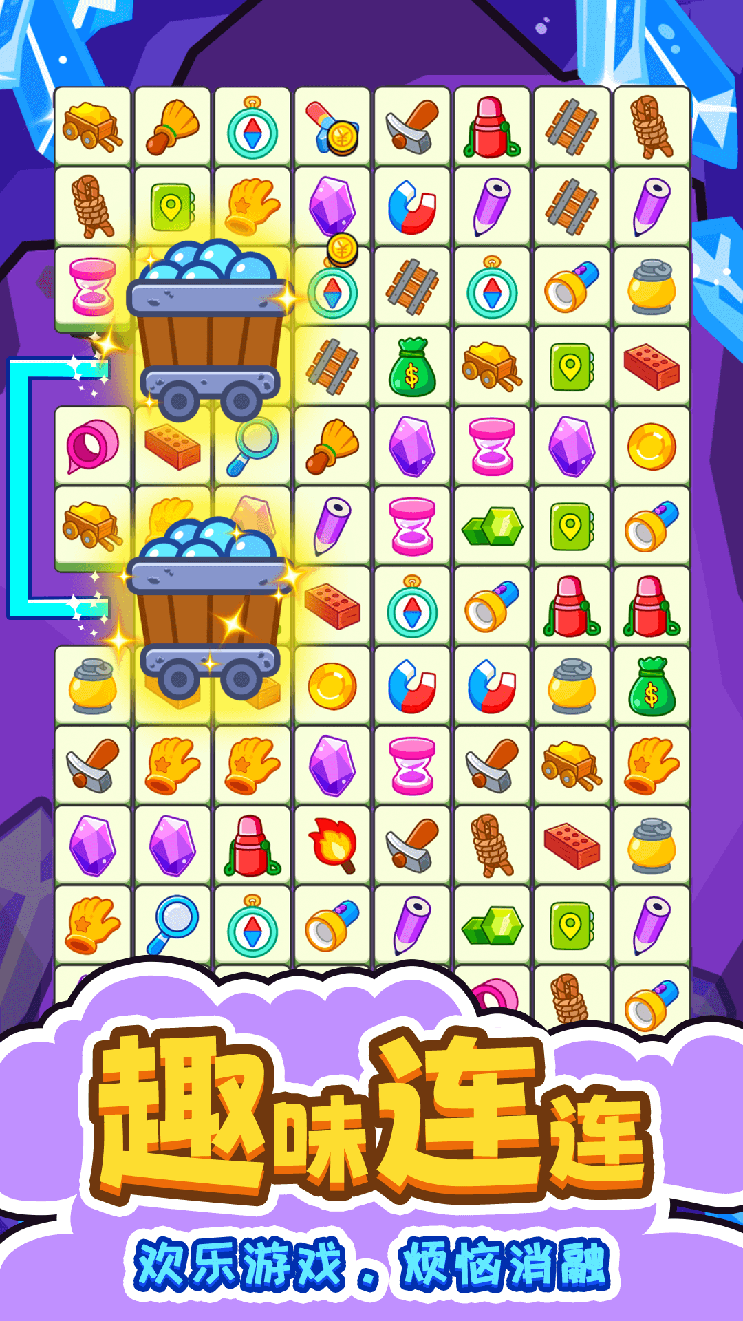 在游戏开始时,玩家会面对一个由不同颜色方块组成的棋盘。每个方块都有其独特的图案,玩家的目标是通过点击两个相同的方块进行连线消除。连线的方式可以是直线或拐弯,玩家需要灵活运用空间感来找到最佳的连接路径。每成功消除一对方块,都会获得相应的分数,也会逐渐收集到解锁新主题所需的元素。