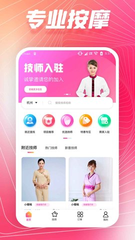 1、支持用户根据地理位置快速找到附近的按摩技师,方便快捷,随时随地预约服务。