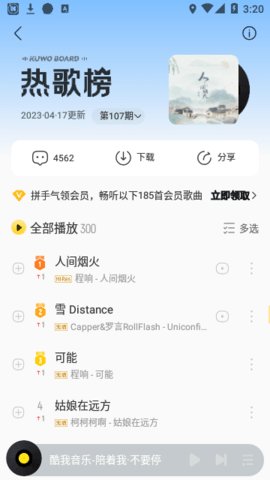 3、丰富的音乐榜单和精准的搜索功能,帮助用户轻松发现热门歌曲,提升了音乐探索的乐趣。