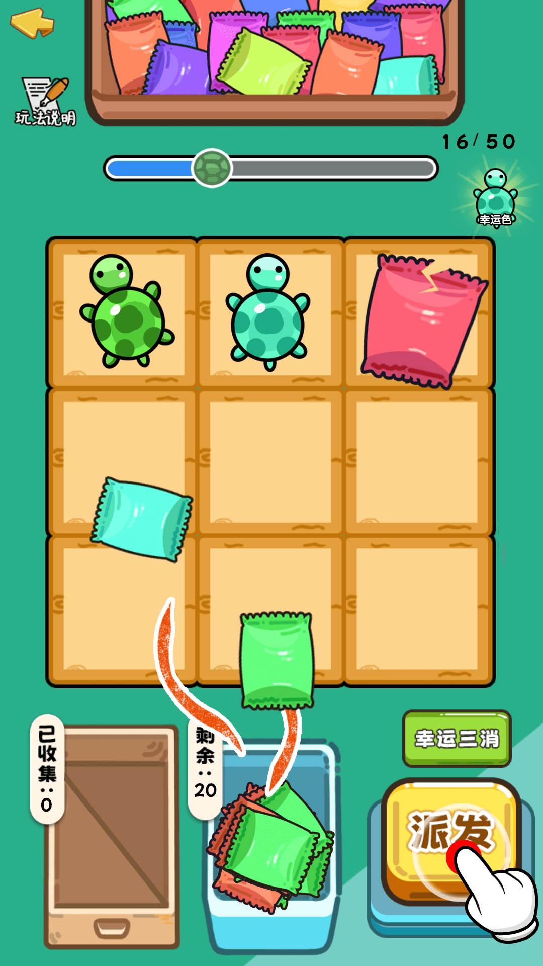 对对碰的玩法非常简单,玩家需要将相同的乌龟进行匹配,形成连击。每次成功的匹配都会带来丰富的积分和道具奖励,帮助玩家解锁更多的盲盒。在这个过程中,玩家不仅要注意匹配的速度,还要思考如何利用手中的乌龟组合出最佳的连击效果。